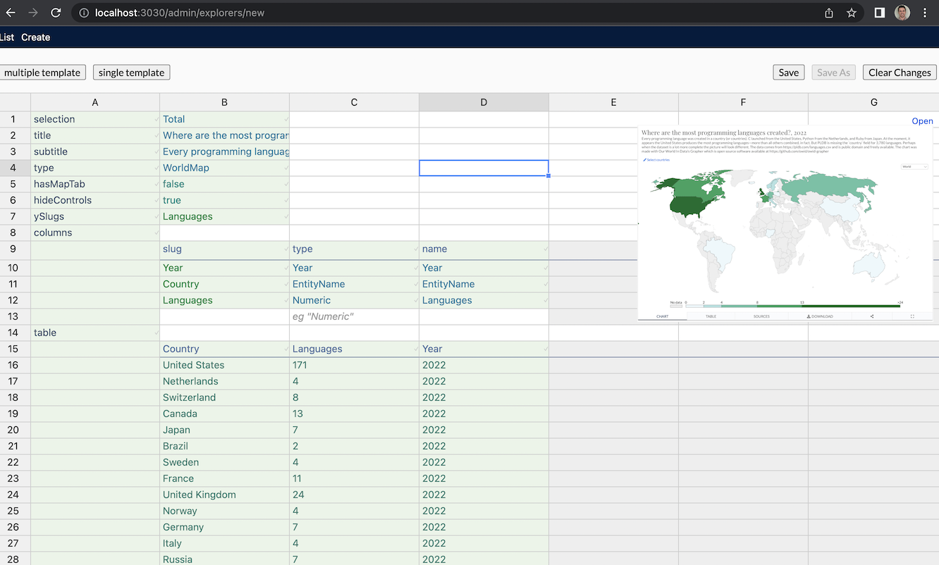 Explorer is an open source visual programming language created in 2020 by Hannah Ritchie and Breck Yunits and Shahid Ahmad.